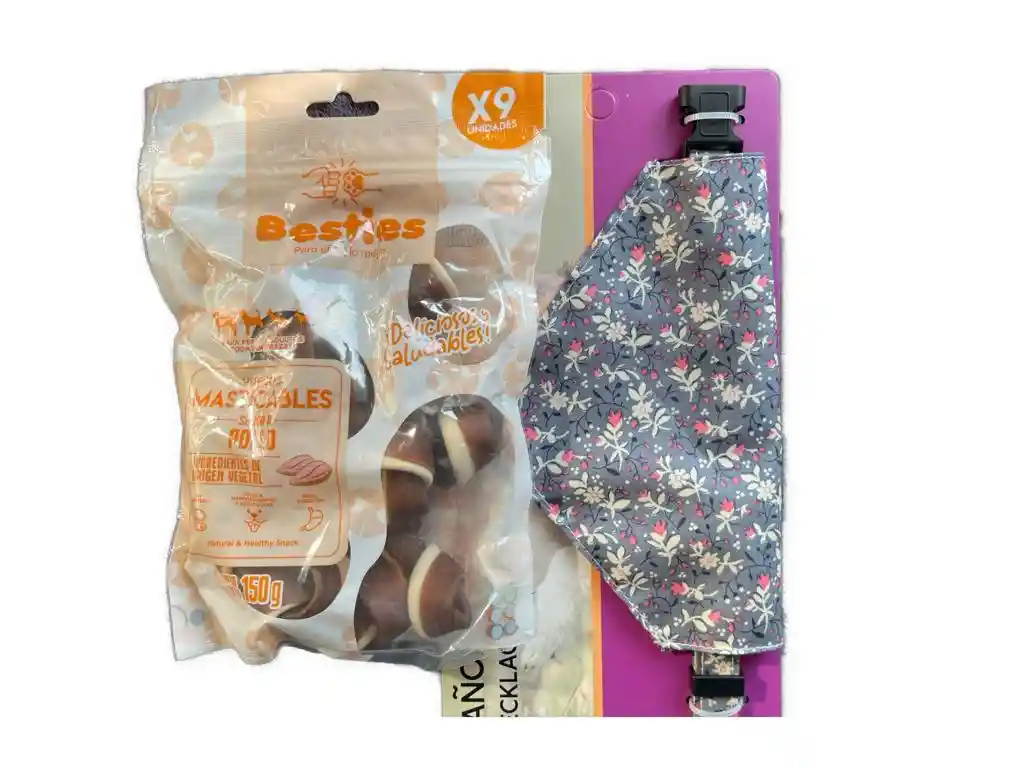 Para Perros 1x Huesos Masticables Mini Pollo Besties (9 unidades 150g) 1x Pañoleta Con Collar (color a disponibilidad)