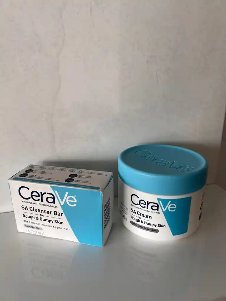 COMBO 3 Inspirado en pieles que presentan Queratosis Pilaris o texturas en la piel , son dos productos Alisadores Anti-rugosidades con Urea 10% de CeraVe y ácido salicílico, está formulada para suavizar, alisar e hidratar de forma eficaz la piel seca y escamosa, de uso diario, recomendado para pieles rugosas con imperfecciones / pieles hiperqueratóticas. Productos: - CERAVE SA SMOOTHING CREAM ANTIRUGOSIDADES 340ml - CERAVE SA CLEANSER BAR 180gr