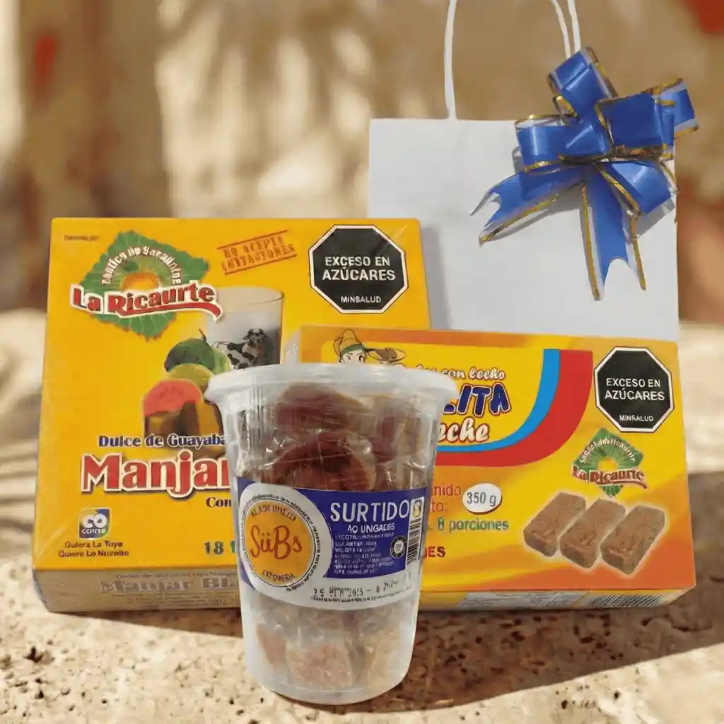 Este combo está inspirado en la abundancia, diseñado para compartir nuestra tradición. ¿Por qué es el Favorito? Disfrutar y repartir: 🍬 1. El " Mix Surtido" (x40 Und): El clásico surtido para que la llama nunca se apague y siempre haya algo nuevo que probar. 🍰 2. La "Marqueta Inolvidable" ( x18 Porciones ): Nuestro manjar de Guayaba y dulce de leche. 🥛 3. El "Pack Panelitas " (x8 Und): Panelitas de Dulce de Leche. Suaves y cremosas. 🎁 Listo para Regalar: Entregado en Bolsa Kraft Premium con lazo. ✈️ Travel-Friendly: nuestros productos viajan de forma segura en la maleta, llevando el sabor de casa a donde vayas.