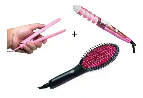 Combo cepillo secador más rizador más plancha viajera, para mantener tu estilo de cabello y recto puede sentirse como un trabajo a tiempo completo. Pero evitar el aspecto perfecto cuando lo necesites significa vestir y cepillarse con tus alisadores y cepillos. Caraterísticas: - Se conecta a la pared y se caliente muy rápido - Cepillo Alisador - Mejor que una plancha tradicional - Alisa fácil y sencillo con solo peinar tu cabello - Pantalla Led - Temperatura Máxima de 230C - Control de Calor con Botones al costado del cepillo - Es muy fácil de utilizar es solo conectar y poner la temperatura - Cerdas rígidas para efecto más rápido de Alisado - Mango Ergonómico El combo contiene: - Cepillo secador alisador - Rizador - Plancha viajera