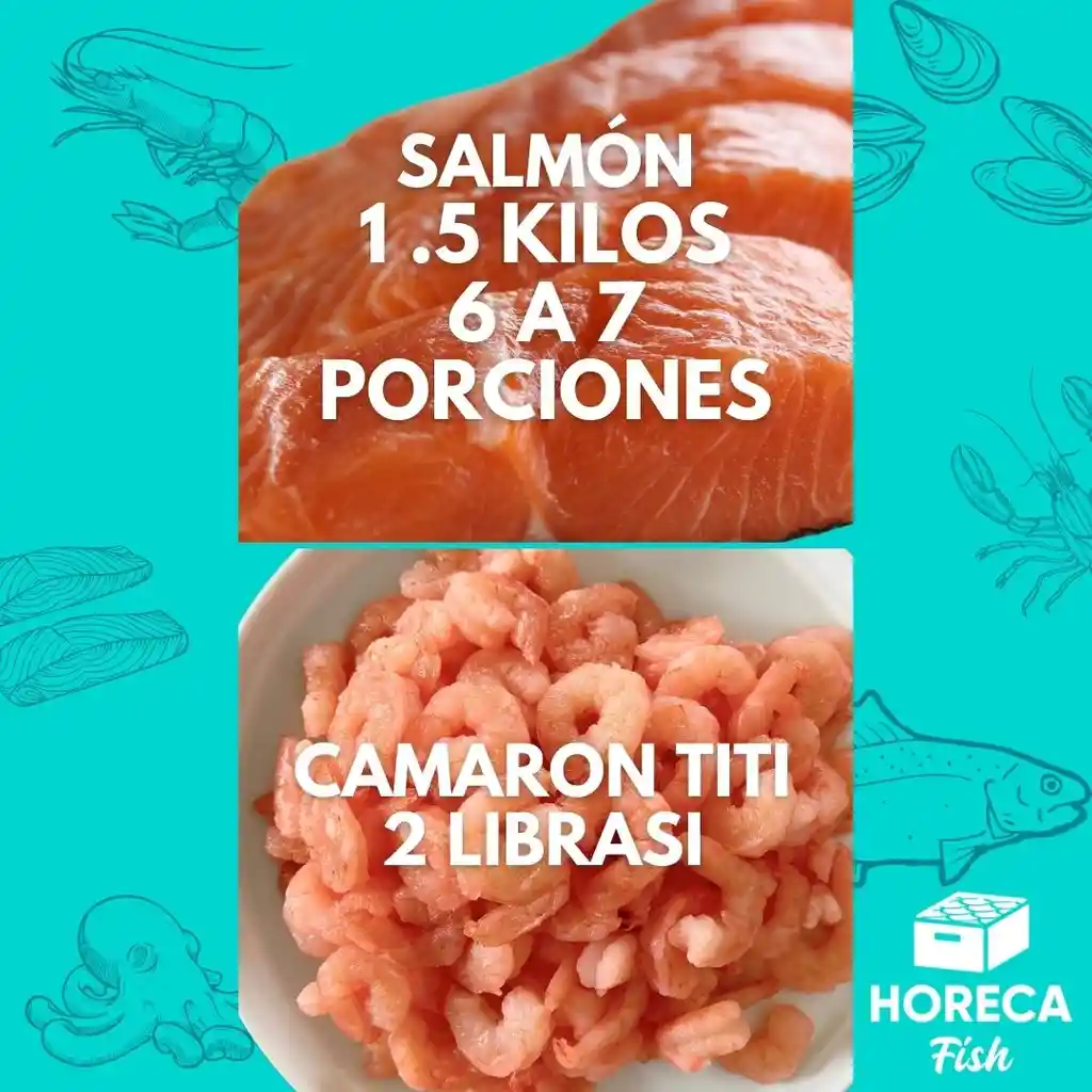 Salmón Porcionado 1,5 kg, Camarón Titi Precocido 1kg; productos congelados
