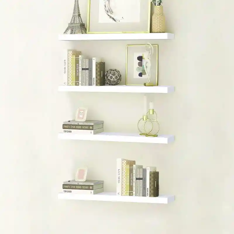 Combo 4 repisas Flotantes Decoracion moderna, 12cm Fondo x 30cm largo, Color blanco Decora tu hogar elegante y moderno con nuestras repisas flotantes de pared, dan nueva vida a tu habitación, por lo que puedes crear una pared de decoraciones con tus objetos favoritos. Ya sea que estés creando un soporte de fotos en la sala de estar o necesitas espacio de almacenamiento adicional en el balcón, estas repisas de pared puedes mostrar tus artículos de forma elegante en cualquier lugar y reducir el desorden. Instalación sin complicaciones: con la ayuda de nuestras instrucciones de instalación incluidas, puedes configurar tu estante flotante montado en la pared en menos de 20 minutos, soportes invisibles mejoran la estética minimalista, mientras que las instrucciones fáciles de entender garantizan un proceso sin frustraciones. ¿Que esperas para obtener tu repisa y decorar tu hogar? : ) Descripción del producto: • Medidas del Producto: 12cm profundo x 30cm largo x 1.5 cm de grosor • Incluye 4 repisa de madera COLOR BLANCO • Incluye chascos para concreto y tonillos • NO INCLUYE, instalación, ni ningún otro producto o objetos que hacen parte de la ambientación. • Marca: MYP Company • Modelo: 4xR002 • Capacidad de carga, hasta 3kg de peso estático distribuido. •Superficie en madera RH de 15mm recubiertas en 2 caras por melamina COLOR BLANCO textura. •Madera RH con mayor resistencia a la humedad y al agua. Fácil de limpiar. •Cubrecanto PVC (canto flexible) de COLOR BLANCO pegado al borde. •Peso: 0.8 kg Nota: El tono del color de la imagen es ambientado y podría tener alguna variación leve al color en físico debido al formato digital o pantalla de donde visualice.