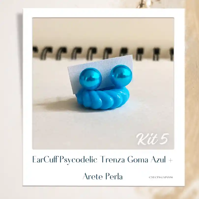 Combo 5 EarCuf Psycodelic Trenza Goma Azul + Arete Perla