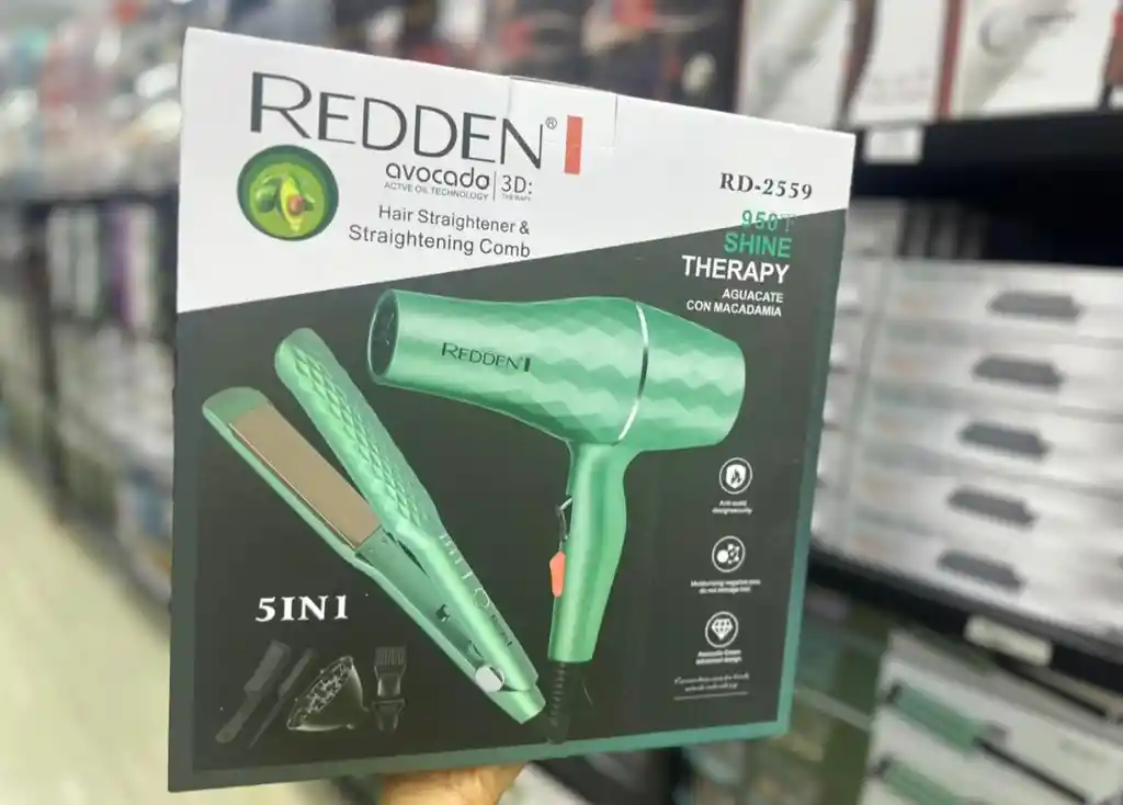 Combo secador con difusor plancha y accesorios de belleza redden