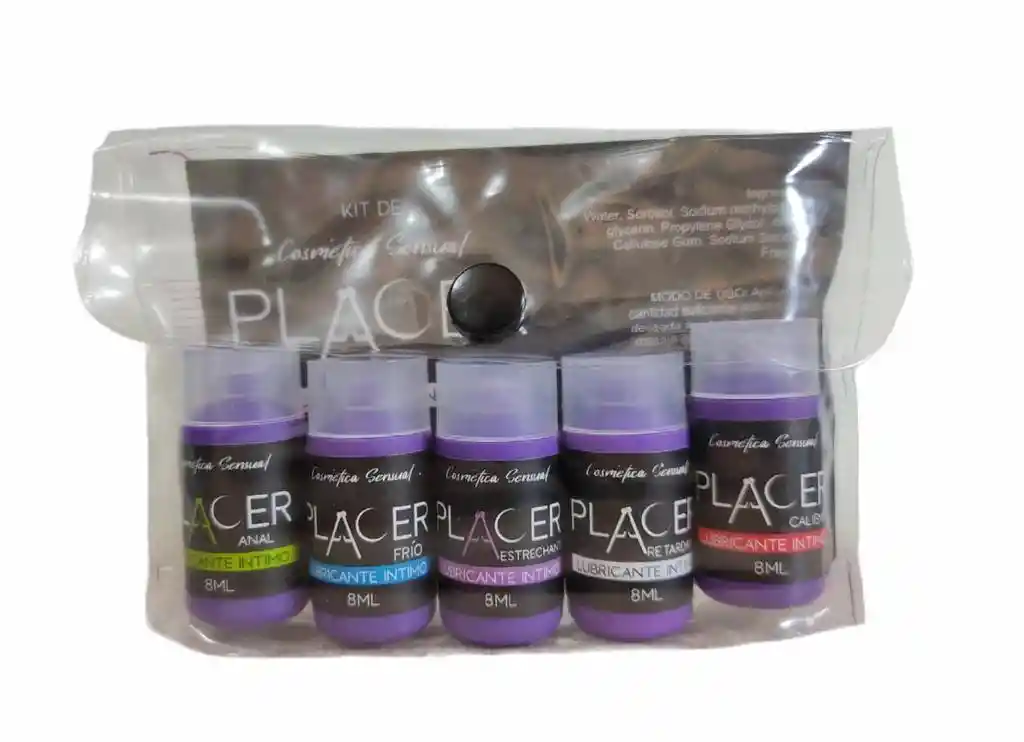 INCLUYE: • Frasco Lubricante Anal x 8ml • Frasco Lubricante Frio x 8ml • Frasco Lubricante Estrechante x 8ml • Frasco Lubricante Retardante x 8ml • Frasco Lubricante Caliente x 8ml • ESTUCHE DE PLASTICO PARA ALMACENAR
