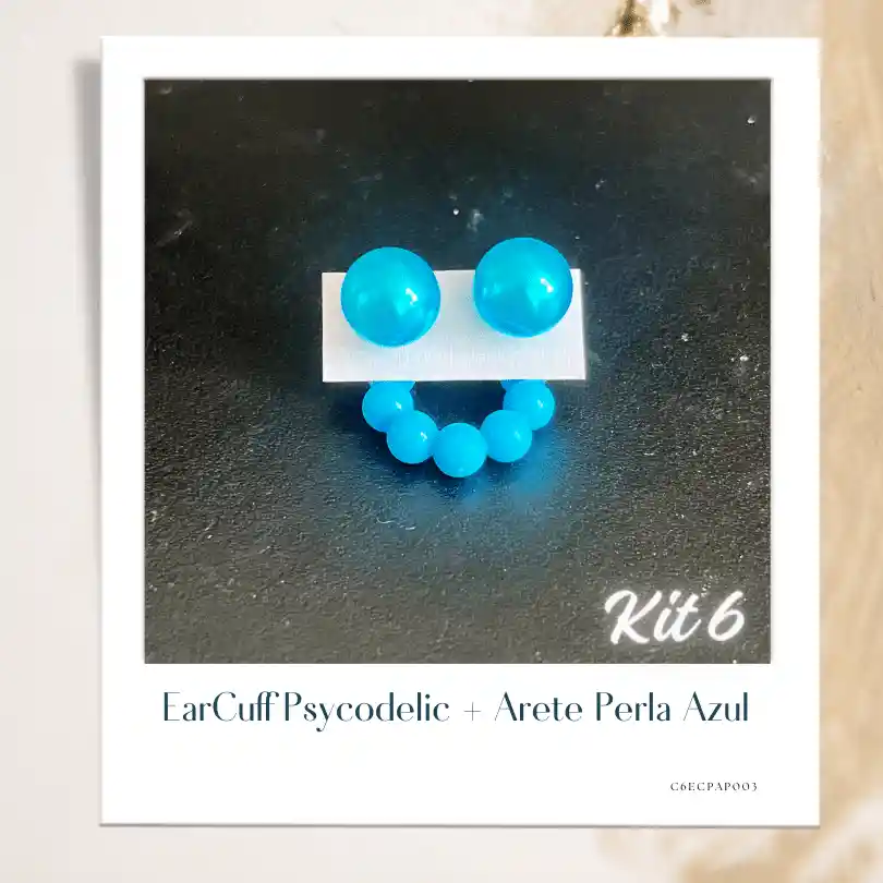 Combo 5 EarCuf Psycodelic Goma + Arete Perla