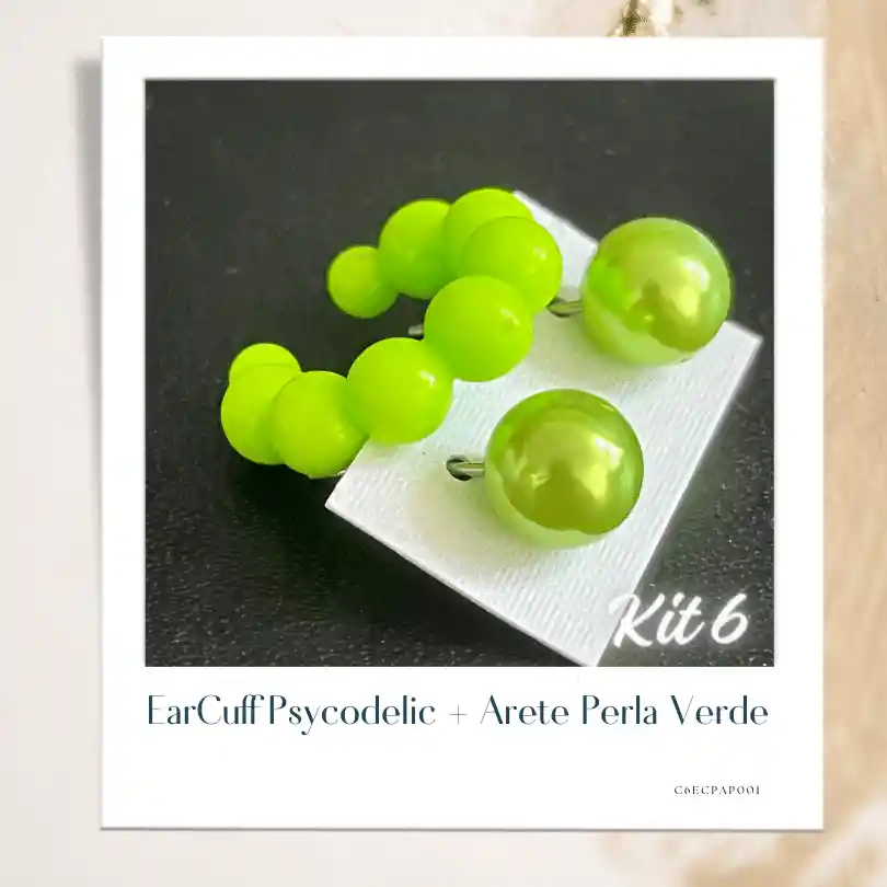 Combo 5 EarCuf Psycodelic Goma + Arete Perla