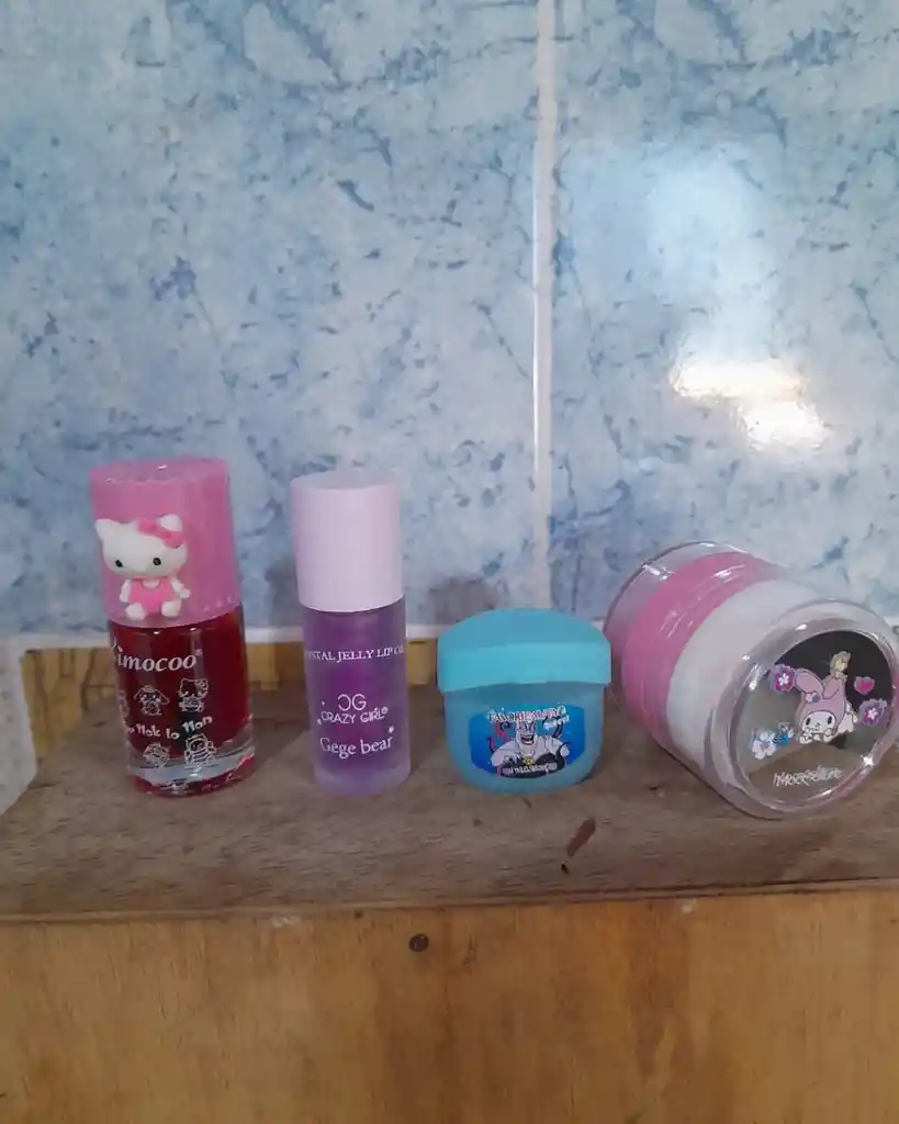 tinta labios vidrio hello kitty, gloss, vaselina labios villano disney, polvo de hadas sanrio