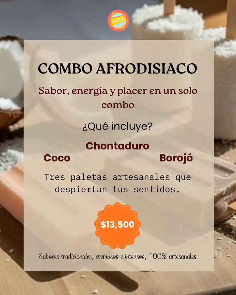 Una experiencia diferente con 3 paletas artesanales: Naidí, borojó y chontaduro. Sabores intensos, exóticos y llenos de energía natural. Perfecto para quienes quieren probar algo único.