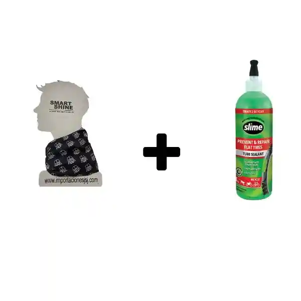 Combo Slime Antipinchazos Llantas Con Neumático16 Oz + Genérico Cuellero en Microfibra Negro 1 Und. Marca #1 de Sellador de Llantas, Para Todo Tipo de Llantas Con Neumático, Sella Pinchazos Hasta de 3 mm, Fabricado en Usa, Sella Instantáneamente, Tecnología Fibro-Seal (Patentada), no Tóxico, no Flaméable, no Tapa Válvulas, no Vulcaniza la Llanta, no se Cristaliza, se Limpia Con Agua Más un Cuello Microfibra Unisex, Multiusos de 45 cm Smart Shine, Tipo Buff, Diseños Exclusivos, Fácil de Lavar, se Puede Usar en Seco y/o Mojado