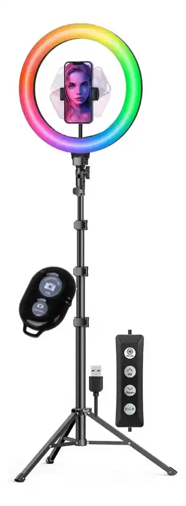 Ilumina tus momentos con el Aro de Luz LED RGB de 26 cm de la marca Genérica. Este aro, con su elegante estructura negra, es ideal para creadores de contenido, streamers y amantes de la fotografía que buscan una iluminación versátil y de calidad. Su diseño permite una fácil adaptación a diferentes entornos, brindando una luz suave y envolvente. Con una potencia de 25 W y la capacidad de ajustar la intensidad gracias a su función dimmable, podrás personalizar la atmósfera de tus espacios. La tecnología RGB te ofrece una amplia gama de colores, permitiéndote experimentar con diferentes tonalidades para cada ocasión. Además, su alimentación por USB facilita su uso en cualquier lugar, ya sea en casa o en exteriores. El aro incluye un soporte para teléfono, lo que lo convierte en una herramienta práctica para grabar videos o realizar videollamadas con una iluminación óptima. Con conectividad Bluetooth, podrás controlar la luz de manera sencilla desde tu dispositivo móvil, haciendo que la experiencia sea aún más cómoda y accesible. No dejes pasar la oportunidad de transformar tu espacio y mejorar la calidad de tus contenidos con este aro de luz LED. Su diseño funcional y moderno se adapta a tus necesidades, convirtiéndolo en un aliado indispensable para cualquier creador.