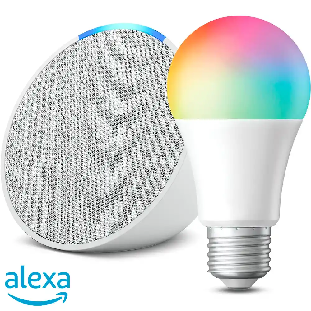 Súmate al mundo de la inteligencia artificial con el Amazon Echo pop que ofrece soluciones para automatizar algunas tareas en tu hogar. ● Controla tus luces sin levantarse: usa tu voz para controlar tu bombillo inteligente diciendo: "Alexa, enciende las luces" para una experiencia de manos libres. ● Fácil de configurar y usar: para configurar tu bombillo, conecta y configura tu dispositivo Echo, conecta tu bombillo y pregunta: "Alexa, descubre mis dispositivos". Usa tu voz para nombrar tu bombillo y comienza a usarla de inmediato. ● No se requiere un centro de hogar inteligente: configura rutinas y horarios a través de la aplicación Alexa. ● Amplía tu hogar inteligente: administra fácilmente tu hogar inteligente usando tu voz para encender las luces, ajustar los termostatos y cerrar las puertas con dispositivos compatibles. ● Colores brillantes para iluminar cada momento: enciende o apaga el bombillo que cambia de color, atenúa, ilumina, configura rutinas, horarios y más con la aplicación Amazon Alexa. Utiliza 16 millones de colores brillantes y suaves, además de blancos sintonizables, para crear el estado de ánimo perfecto Alto brillo (800 lúmenes) Ideal para fiestas, entretenimiento y uso diario. ● Certificado para humanos, sin problemas, sin retoques, sin estrés. No se necesitas paciencia, en realidad es simple. ● Contenido: un (1) echo pop y un (1) bombillo inteligente.