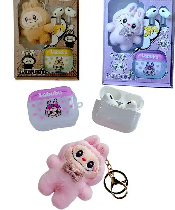 Combo 3 en 1 EL MEJOR REGALO PARA NIÑOS EN ESTA EPOCA O A LOS AMANTES A LABUBU. Modelo de chip Bluetooth: Bluetooth Versión: 5.1 Batería del tapón oídos Capacidad: 50 mAh, caja de carga Capacidad de batería: 250 mAh Tiempo de carga: 1H, Tiempo de resistencia: 5H Modo de operación: Touch Incluye: Audifonos Llavero Estuche para audifonos