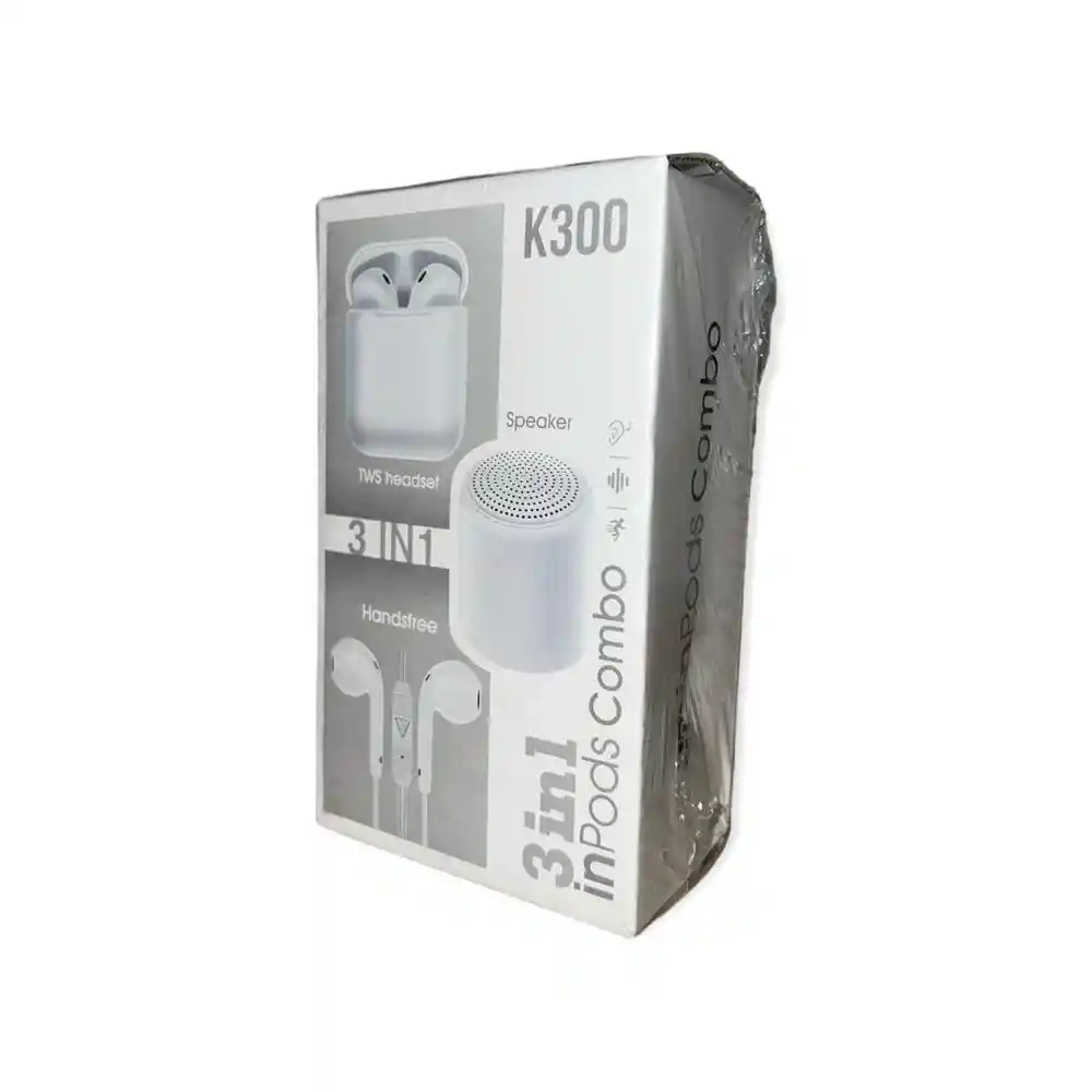 AUDIFONOS TWS: Escuchar la canción correctamente, apoyar canciones y llamadas, Recuerda el número de llamada, la última devolución de llamada todos las indicaciones de voz inteligentes en chino y en Inglés, iniciar, emparejar, apagar la alimentación del teléfono serán avisos de voz baja; La capacidad de energía se mostrará en su Iphone, puede ver la situación de energía en cualquier momento, no se preocupe por la electricidad, haga su vida sin preocupaciones; Una a dos conexiones, se puede conectar a dos teléfonos móviles al mismo tiempo, Auriculares Bluetooth conectados al teléfono después del apagado, conecte los auriculares Bluetooth y luego abra de nuevo el teléfono automáticamente, más conveniente; Compatibilidad inteligente: admite todos los teléfonos móviles Bluetooth, tabletas, ordenadores portátiles, canciones, música QQ, películas, etc., todos los teléfonos móviles universales. SPEAKER BT: Mini Altavoz inPods FUN compatible con Bluetooth, altavoz inalámbrico portátil TWS para viajes al aire libre, hogar, El altavoz admite la conexión de un teléfono móvil a dos altavoces compatibles con Bluetooth. Cómo usar la función TWS: Haga doble clic en el botón de encendido. MANOS LIBRES: Auriculares con cable, auriculares estéreo de bajo, Auriculares deportivos de música para Samsung iPhone Xiaomi Huawei. Calidad de sonido Premium. Estos auriculares ofrecen un sonido de alta fidelidad con graves profundos y agudos cristalinos, proporcionan una buena calidad de sonido para música y llamadas telefónicas. Diseño cómodo. Micrófono integrado y control multifunción, responder/finalizar llamadas, siguiente pista, pista anterior, pausa y re-producción. Diseño ergonómico. Proporciona un ajuste cómodo para sus oídos y uso prolongado, ideal para escuchar durante el ejercicio, los viajes o el uso diario. Amplia compatibilidad. Ideal para dispositivos iOS, teléfonos inteligentes Android, re-productor MP3/MP4, altavoz de música y todos los demás dispositivos jack de 3,5mm. CARACTERÍSTICAS AUDIFONOS TWS: Nueva Bluetooth chip 5,0 Unidad de altavoz grande de 2,10 MM, calidad de sonido impactante. Bluetooth distancia: 10M Tipo: auriculares inalámbricos bluetooth TWS Capacidad de carga: 300Mah Habla: 2-3 horas Potencia del auricular izquierdo/derecho: 30Mah Duración de la batería con compartimento de carga: 50 horas Música: 5 horas SPEAKER BT: Chip: AB5377 Material: ABS Batería: ternario puro de polímero con placa protectora Puerto de carga: USB Capacidad de la batería: 400mAh Voltaje de carga de la batería: DC 5V Tiempo de carga: 1h Tiempo de uso: 2-3h Función: Función de emparejamiento TWS, cambio en chino e inglés, re-producción de música compatible con Bluetooth. Tamaño del producto: 47*45*45mm/1,85*1,77*1,77" Peso del producto: 55g Peso bruto: 98g MANOS LIBRES: Material de alambre: TPE Rango de frecuencia: 20Hz-20KHz Sensibilidad: 116 ± 3dB Impedancia: 32 ± 15% Tamaño del altavoz: 14mm Pin: 3.5mm Longitud del cable: 120cm EL PAQUETE INCLUYE 1 TSW Headset 1 Speaker BT 1 Handsfree 2 Cables Usb de carga