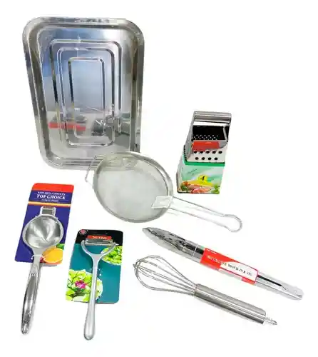 SE ENVIA TODO LO QUE SE VE EN LA FOTO Se envían : - pinzas - rallador - bandeja - exprimidor de limón - colador - pelador de papas - mezclador material pvc plástico y acero inoxidable totalmente nuevo se despacha el mismo día de la compra KT259 BAE1629 BAN-C1 CCT5079-7 KH809-62 COLADOR DOBLE MAYA