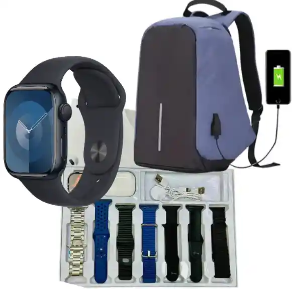 Estilo urbano y tecnología en movimiento Este combo reúne los accesorios indispensables para la vida moderna. El Bolso Antirrobo, el Smartwatch V11 con correas intercambiables y los Audífonos inalámbricos Se combinan para ofrecerte comodidad, monitoreo de tu actividad diaria y conectividad continua. Componentes del combo: Mochila Antirrobo con puerto USB: Diseño ergonómico, cierres ocultos para mayor seguridad, resistente al agua, ideal para laptops, cuadernos y gadgets. Smartwatch Combo V11: Equipado con múltiples funciones de salud y deporte. Incluye varias correas intercambiables para combinar con tu estilo o atuendo diario. Audífonos inalámbricos normales: Perfectos para escuchar música o atender llamadas, con controles básicos y una batería práctica para el día a día. Ventajas principales: Ideal para oficina, universidad, viajes o rutinas activas. Personalización del smartwatch según tu look. Tecnología y diseño adaptados a tu ritmo. Incluye garantía de 30 días.