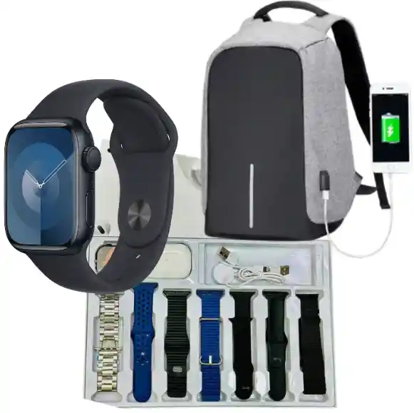 Estilo urbano y tecnología en movimiento Este combo reúne los accesorios indispensables para la vida moderna. El Bolso Antirrobo, el Smartwatch V11 con correas intercambiables y los Audífonos inalámbricos Se combinan para ofrecerte comodidad, monitoreo de tu actividad diaria y conectividad continua. Componentes del combo: Mochila Antirrobo con puerto USB: Diseño ergonómico, cierres ocultos para mayor seguridad, resistente al agua, ideal para laptops, cuadernos y gadgets. Smartwatch Combo V11: Equipado con múltiples funciones de salud y deporte. Incluye varias correas intercambiables para combinar con tu estilo o atuendo diario. Audífonos inalámbricos normales: Perfectos para escuchar música o atender llamadas, con controles básicos y una batería práctica para el día a día. Ventajas principales: Ideal para oficina, universidad, viajes o rutinas activas. Personalización del smartwatch según tu look. Tecnología y diseño adaptados a tu ritmo. Incluye garantía de 30 días.