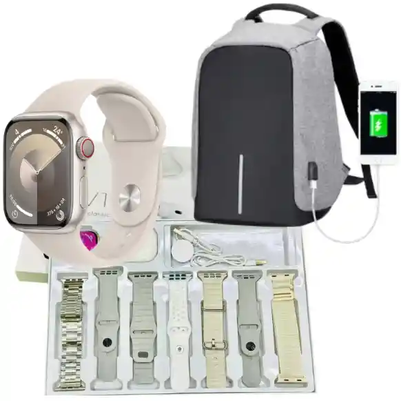 Estilo urbano y tecnología en movimiento Este combo reúne los accesorios indispensables para la vida moderna. El Bolso Antirrobo, el Smartwatch V11 con correas intercambiables y los Audífonos inalámbricos Se combinan para ofrecerte comodidad, monitoreo de tu actividad diaria y conectividad continua. Componentes del combo: Mochila Antirrobo con puerto USB: Diseño ergonómico, cierres ocultos para mayor seguridad, resistente al agua, ideal para laptops, cuadernos y gadgets. Smartwatch Combo V11: Equipado con múltiples funciones de salud y deporte. Incluye varias correas intercambiables para combinar con tu estilo o atuendo diario. Audífonos inalámbricos normales: Perfectos para escuchar música o atender llamadas, con controles básicos y una batería práctica para el día a día. Ventajas principales: Ideal para oficina, universidad, viajes o rutinas activas. Personalización del smartwatch según tu look. Tecnología y diseño adaptados a tu ritmo. Incluye garantía de 30 días.