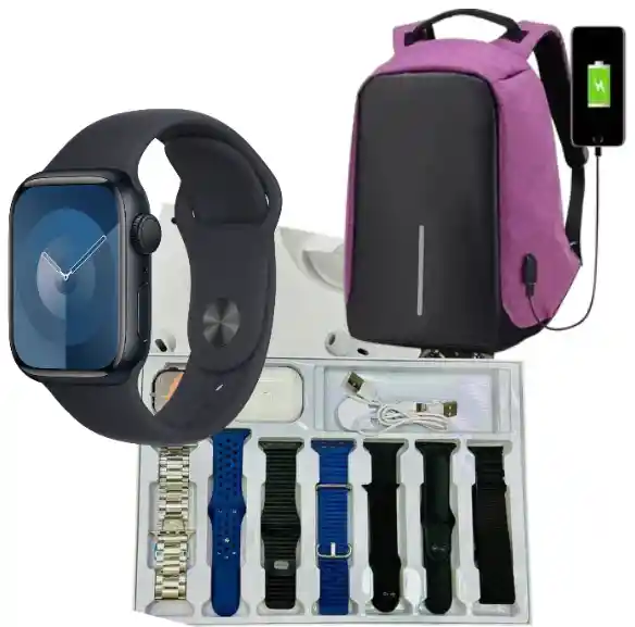 Estilo urbano y tecnología en movimiento Este combo reúne los accesorios indispensables para la vida moderna. El Bolso Antirrobo, el Smartwatch V11 con correas intercambiables y los Audífonos inalámbricos Se combinan para ofrecerte comodidad, monitoreo de tu actividad diaria y conectividad continua. Componentes del combo: Mochila Antirrobo con puerto USB: Diseño ergonómico, cierres ocultos para mayor seguridad, resistente al agua, ideal para laptops, cuadernos y gadgets. Smartwatch Combo V11: Equipado con múltiples funciones de salud y deporte. Incluye varias correas intercambiables para combinar con tu estilo o atuendo diario. Audífonos inalámbricos normales: Perfectos para escuchar música o atender llamadas, con controles básicos y una batería práctica para el día a día. Ventajas principales: Ideal para oficina, universidad, viajes o rutinas activas. Personalización del smartwatch según tu look. Tecnología y diseño adaptados a tu ritmo. Incluye garantía de 30 días.