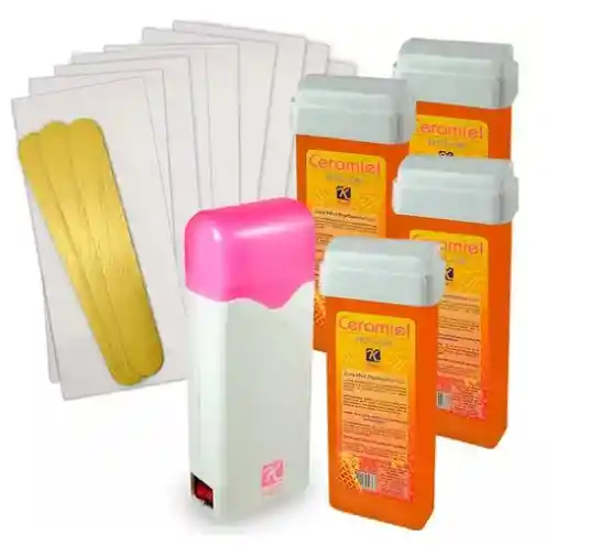 Descripción COMBO DE DEPILACIÓN EN ROLL ON, INCLUYE CALENTADOR, 4 CERAS ROLLON Y LIENZOS IDEAL PARA USO EN EL HOGAR. PRODUCTO HECHO EN COLOMBIA ¡Porque depilarse ahora es más fácil y rápido! Incluye Calentador Roll-on de cera depilatoria, Ceramiel en Roll-on de 100gr y juego de 100 bandas depilatorias. Especificaciones: CALENTADOR DERRETIDOR: Su uso es muy fácil, sólo conecte a la corriente, deje calentar hasta que la ceramiel esté líquida, deslice el rodillo en la piel en sentido al crecimiento del vello y retire con las bandas depilatorias. Se puede hacer sin retirar el cartucho de ceramiel del calentador. Color: Blanco Exterior Material plástico aislante de calor que facilita el uso Contenido máximo: Repuesto de ceramiel de 100grs Temperatura de calentamiento. Automático 60 ~ 70 grados centígrados Tamaño: aprox. 10x18x4 cm. Voltaje: 120 V, 60Hz, 100 W Peso neto: 100gr Encendido. Botón interruptor CERAMIEL Presentación : Cartucho por 100grs. La Cera Miel en Roll-on es un sistema que asegura que el producto realmente se desecha, ya que al estar la cera en su cartucho, es imposible reciclarla, dándole total tranquilidad, seguridad e higiene. Es ideal para depilar cualquier área del cuerpo sin causar cortes ni irritaciones, dando una textura suave y con un efecto duradero. BANDAS DEPILATORIAS Las bandas tienen un tamaño ideal y son fáciles de usar. Aplique la ceramiel en áreas pequeñas, coloque la banda ejerciendo presión y retire en sentido contrario al crecimiento del vello. PAQUETE INCLUYE: 1x Calentador Roll-On marca Kalú 4x Cartucho Cera Depilatoria en Roll-On 100gr 1x Kit de 100 Lienzos.