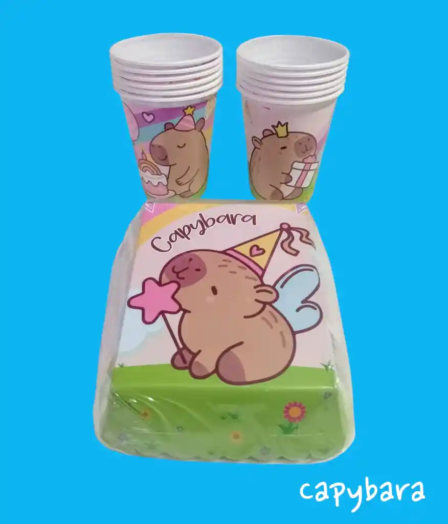 ¡Haz que la fiesta sea inolvidable con este encantador Set Capybara! Incluye 12 vasitos y 12 torteros con diseños coloridos y divertidos, perfectos para decorar mesas infantiles y servir postres o bebidas. Ideales para cumpleaños, reuniones escolares o cualquier celebración especial. ¡Prácticos, reutilizables y llenos de ternura!