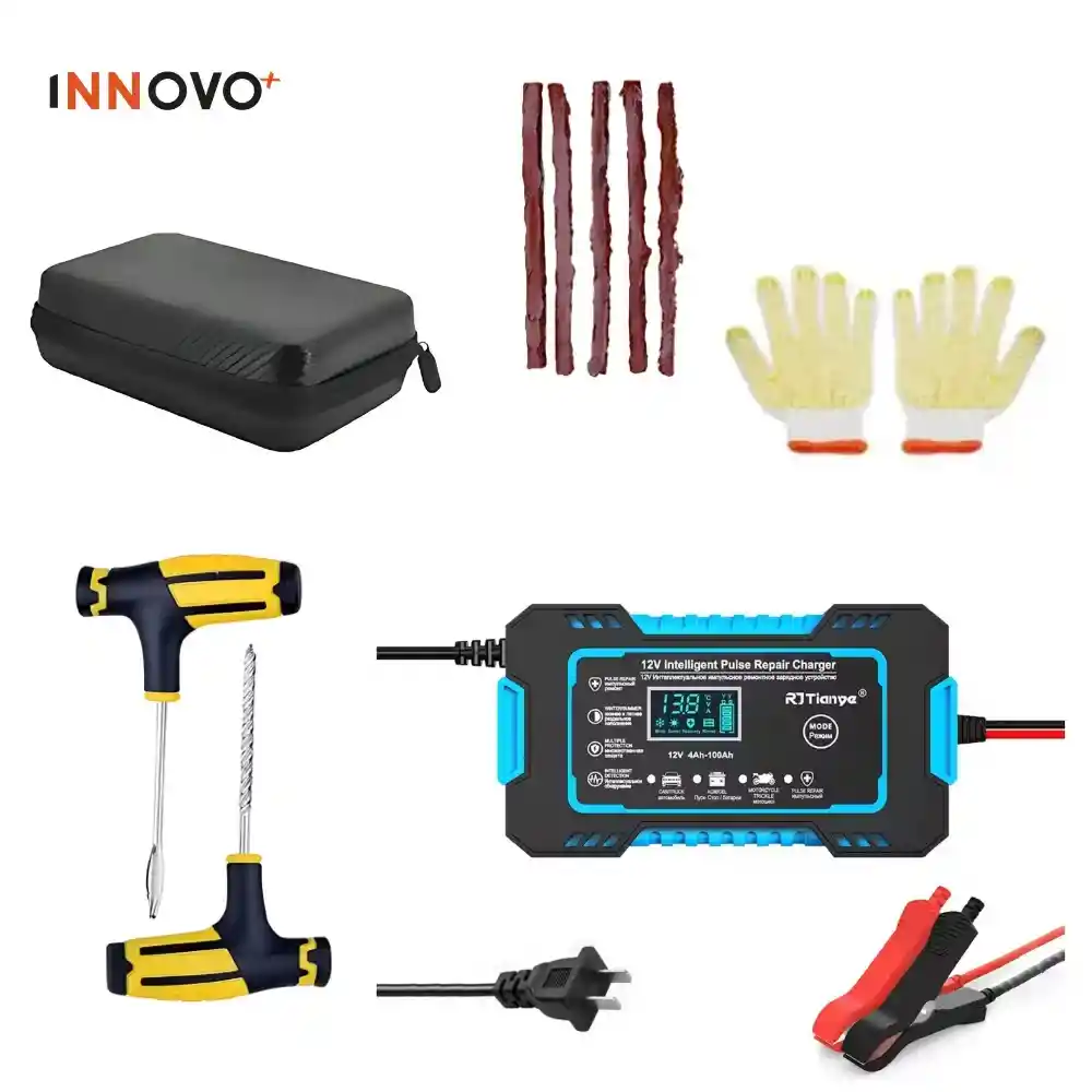Combo Cargador e Iniciador de Batería 12V + Kit de Despinche para Carro y Moto ¡Prepárate para cualquier imprevisto en la carretera! Con este combo imprescindible, tendrás energía y seguridad en todo momento: Cargador de batería 12V: Inteligente, seguro y con protección contra sobrecalentamiento. Especificaciones: Color: verde, azul, rojo, amarillo (opcional) Enchufe: enchufe del Reino Unido, enchufe de la UE, enchufe de EE. UU. Longitud de la línea de salida: 65cm/25,6'' Longitud de la línea de entrada: 90cm/35,4'' VI: (50-60HZ) OV: CC 6A --- (MAX) Vo: DC13.8-15.5V Aplicación: 12V 2Ah-100Ah Dimensión: 150x62x85mm/5,9x3,4x2,4'' Usos universales: adecuado para batería de plomo-ácido de 12V/batería de arranque-parada/batería de agua seca (la batería de litio está prohibida) Kit de despinche para llantas: Ideal para autos y motos, fácil de usar y portátil. El kit contiene: Guantes para mantener tus manos protegidas y limpias durante la reparación. 4 tacos de alta calidad, ideales para sellar cualquier pinchazo de forma rápida. Estuche de lujo para mantener todos los componentes organizados y protegidos. Dos punzones para facilitar la inserción de los tacos y hacer la reparación aún más sencilla. Todo lo que necesitas en un solo paquete, compacto y listo para llevar en tu vehículo o moto. ¡No dejes que un pinchazo te frene! Con este kit, tendrás la confianza de poder continuar tu viaje sin preocupaciones. ¡Hazte con el tuyo hoy mismo! La mejor solución para cualquier emergencia vial. ¡No te quedes varado, llévalo hoy mismo!