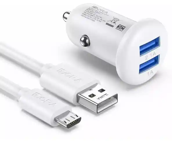 Cargador USB-V8, diseñado para dispositivos móviles con puerto de carga tipo V8, como algunos modelos de smartphones y tabletas. El combo incluye un cargador para carro 2.1 amperios y un cable de carga V8 de 1 metro de longitud. El cargador USB cuenta con un puerto de salida USB estándar que permite conectar el cable de carga V8 o cualquier otro cable de carga compatible para cargar una variedad de dispositivos electrónicos, como teléfonos móviles, tabletas, reproductores de música y más.