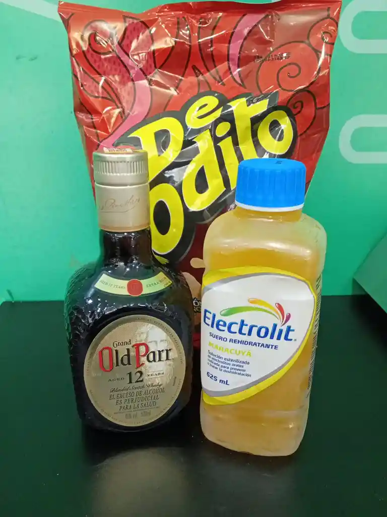 Old Parr 500ml+ detodito bbq 165g+electrolite de maracuya