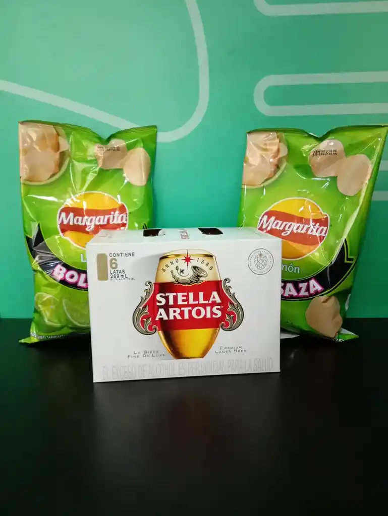 Six pack cerveza Stella+ 2 papas margarita bolsaza sabor a limón