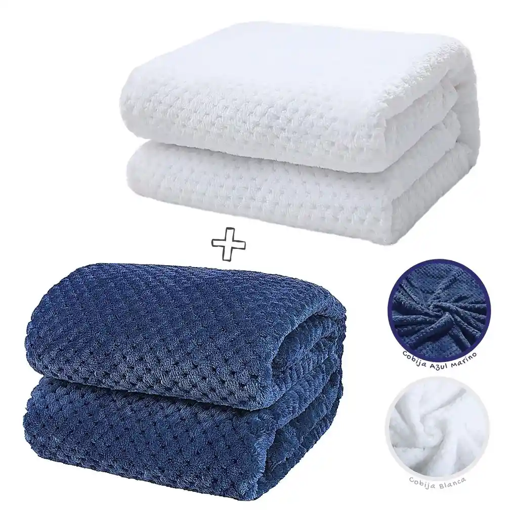 Combo cobijas para cama doble Nuestras cobijas térmicas con diseño popcorn son suaves al tacto, livianas y súper calientitas. Características: - Dimensiones: 1.80 x 2.20 mts aprox. - Colores: 2 Cobijas (1 blanca y 1 azul marino) - Tamaño: cama doble, ambas cobijas. - 100 % poliéster. - Abullonadas. - Cobijas térmicas - Mantas delgadas - No se encogen. - No se motosea. - No se destinen. El material es suave al contacto con la piel y antialérgicas, y lo mejor de todo fácil de lavar y secar. ¡Pide la tuya! Nota: El color presentado en la fotografía es una aproximación al color real.