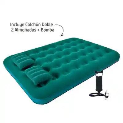 COLCHONETA INFLABLE 2 PERSONAS + INFLADOR + ALMOHADAS 1.99 X 1.39