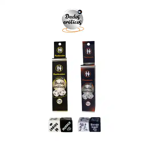 DADOS ERÓTICOS PARA TODO TIPO DE PAREJA Dados Posiciones y/o Penitencias, Deja que la suerte decida la postura que vas a practicar esta noche y salga lo que salga haz caso a los dados. Se trata de un accesorio muy popular entre los juegos eróticos en pareja. En algunos casos las caras del dado solo especifican la postura que debes practicar, en otros son acciones como besar, lamer o tocar, y partes del cuerpo donde debes realizarlas. ¡Déjate llevar!