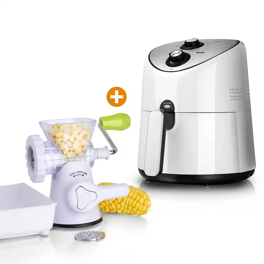 Combo Incluye: -1 Freidora Sin Aceite 3.6 L Air Fast Chef Master Cero Grasas Blanca: Con Air Fast, Podrás Freir, Tostar, Asar e Incluso Hornear Tus Alimentos de Manera Rápida, Sencilla y Saludable. No Necesitas Utilizar Aceite. Cuenta Con Timer de 30 Minutos, Termostato Regulable, Luz Indicadora de Temperatura y su Apagado es Automático. -1 Molino Multiusos Carne, Maiz, Pasta, Coco, Pure Chef Master: Práctico Molino Manual Con 2 Placas en Acero Inoxidable Para Triturado Grueso y Delgado. Su Manija y Sus Cuchillas Están Hechas en Acero Inoxidable. Se Puede Moler Pollo, Res, Cerdo o Pescado; Crudo o Cocinado. Lograrás Triturar Granos, Coco, Café, Plátano, Maiz, Frutos Secos, Verduras. Su Uso es Muy Sencillo, Solamente Selecciona la Placa, Ajusta y Vierte el Alimento en la Parte Superior, Gire la Manija y Obtendrá el Resultado Esperado.
