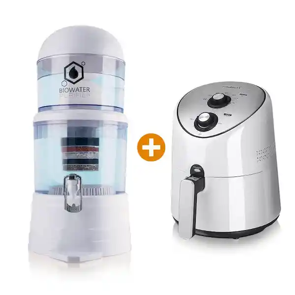 Combo Chef Master Incluye: -1 Freidora Sin Aceite 3.6 L Air Fast Chef Master Cero Grasas Blanca: Herramienta Perfecta Para Que le Des un Toque de Elegancia a tu Cocina. No Necesitas Utilizar Aceite. Cuenta Con Timer de 30 Minutos, Termostato Regulable, Luz Indicadora de Temperatura y su Apagado es Automático. -1 Purificador de Agua Filtro Bioenergético Biowater Purifier 1 de 4 L Chef Master: Sistema de Filtrado Que Asemeja el Filtrado Que Realiza la Naturaleza, al Agua Que Viene de Las Montañas, Incluyendo el Magnetismo Que la Tierra Tiene de Manera Natural y Que Contribuye a Proporcionar un Agua Viva. Con el Purificador de Agua Bioenergético Biowater Purifier, Evitamos el Uso de Garrafones y Botellas de Plástico, Contribuyendo al Cuidado Del Planeta.