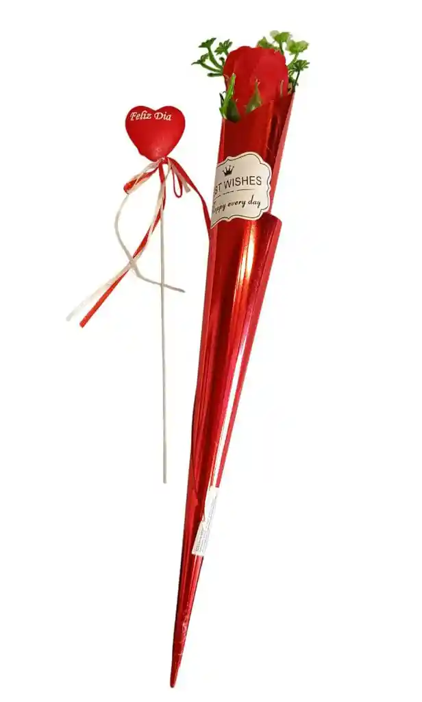 Combo de Flor Rosa y corazon Artificial para tus anchetas