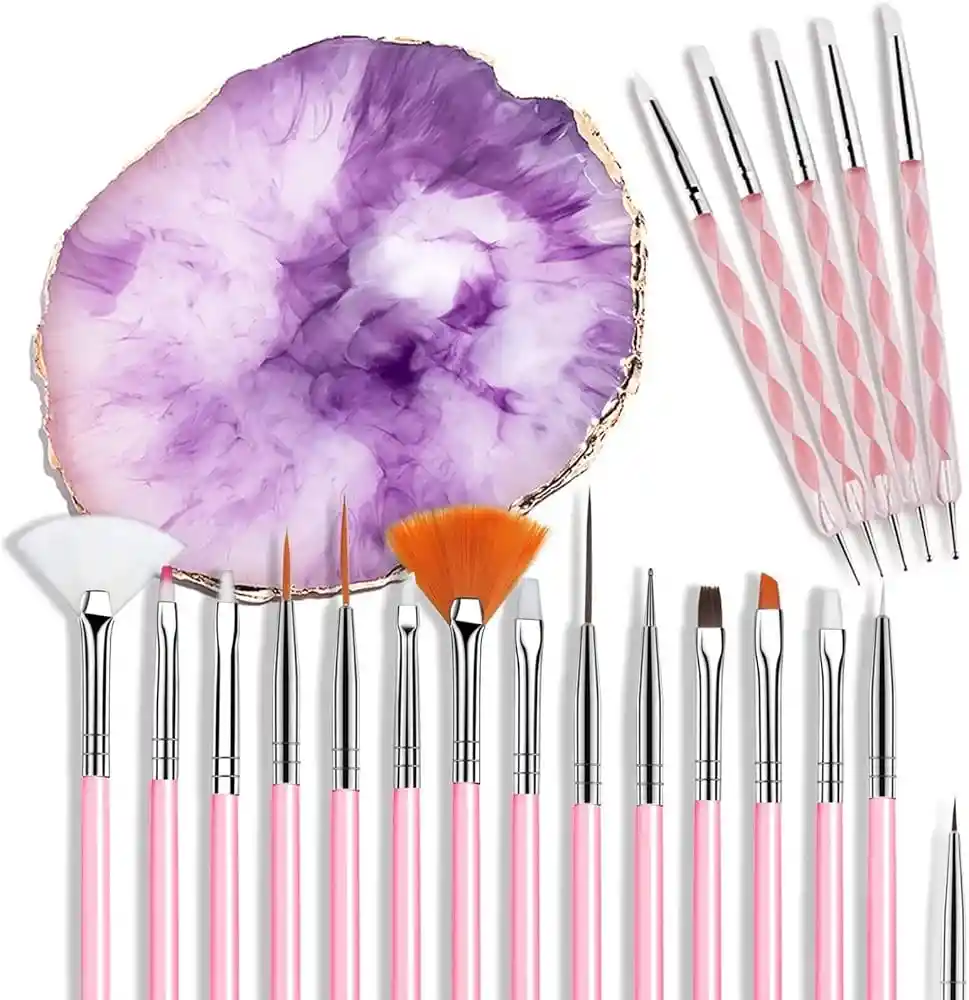 Especificaciones: Material: lana de fibra acrílica de aleación de resina Color: como se muestra en la imagen Cantidad: 15 pinceles diferentes 5 bolígrafos punteadores 1 paleta de resina Características: Nuestra placa de mezcla de colores puede ser para uso profesional, salón de uñas, escuela de arte de uñas, artista, uso personal o doméstico, adecuada para mezclar sombras de ojos, lápices labiales, correctores, cremas de base, pigmentos y otros artículos. Estas paletas de decoración de uñas están hechas de material de resina de calidad que tiene una textura suave, fácil de limpiar y limpiar, con bordes lisos, puede evitar que te rayen, son livianas y portátiles para transportar, no son fáciles de romper, un buen material puede acompañarte mucho tiempo Nuestro juego de herramientas para puntear uñas puede servir para crear una variedad de diseños de uñas, como puntos, delineadores, círculos, flores y otros patrones que desee, artículos ideales para decorar sus uñas y puede tener su propio estilo de uñas con estas herramientas. El paquete incluye: 15 pinceles para diseño de uñas. 5 x bolígrafos punteadores 1 x paleta de uñas