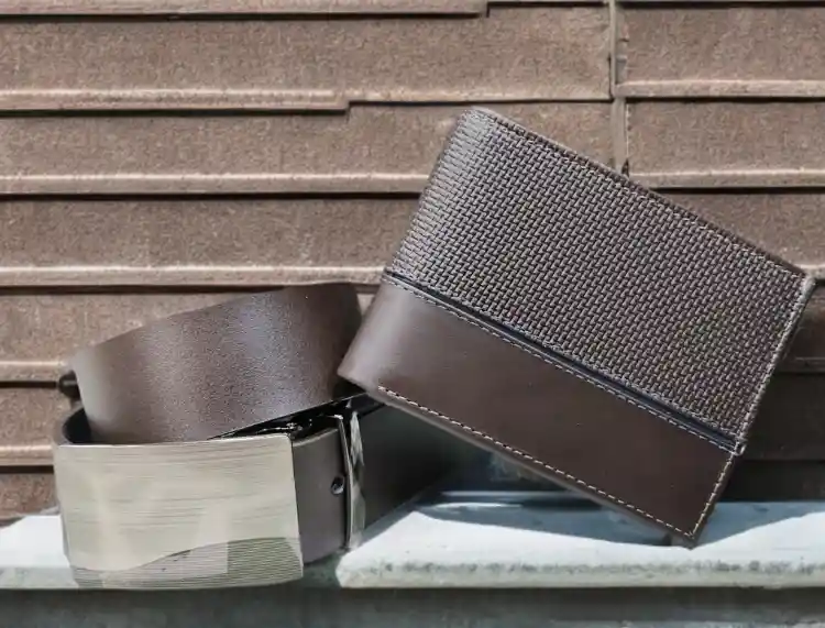 Combo en cuero genuino color cafe con billetera y correa en cuero sinvec