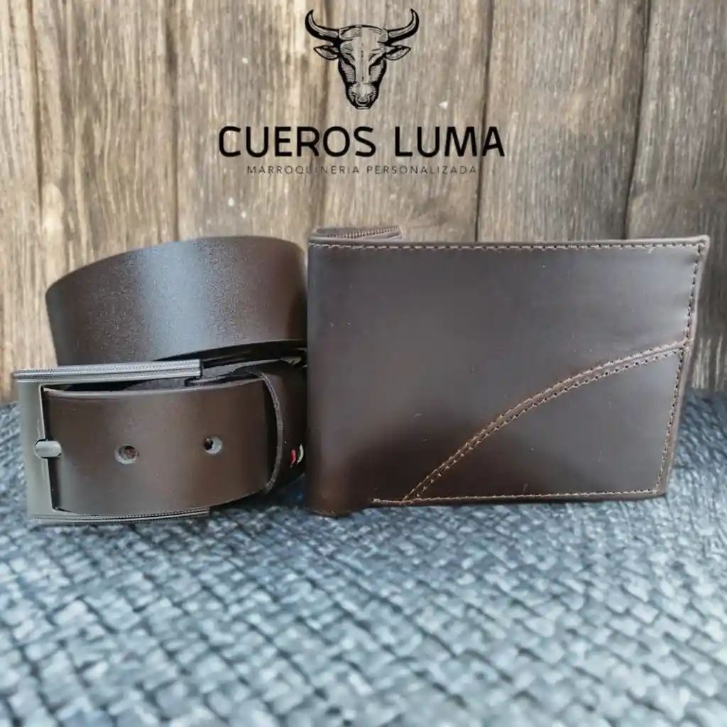 Combo en cuero genuino color cafe con billetera y correa en cuero sinvec