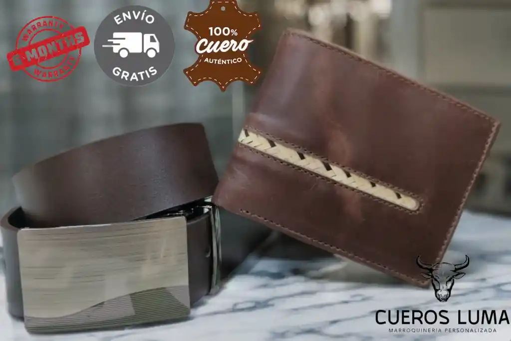 Combo en cuero genuino color cafe con billetera y correa en cuero sinvec