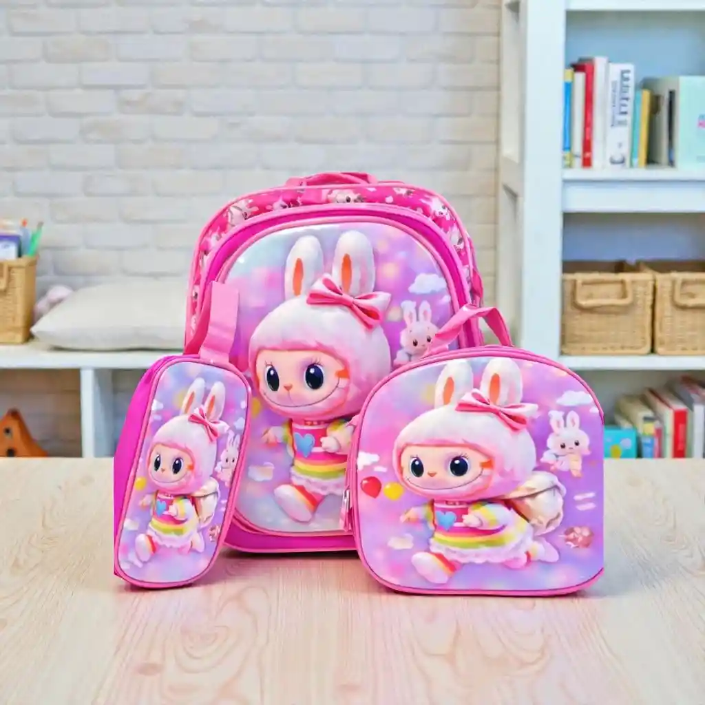 Prepárate para la aventura con este increíble set escolar de 3 piezas,que es el conjunto perfecto para la vuelta al cole, viajes o uso diario. Diseños Vibrantes y Divertidos : Presenta gráficos llamativos en 3D de los personajes más reconocidos y preferidos por nuestras niñas. Materiales Duraderos: Fabricado con materiales de alta calidad para resistir el uso diario y asegurar una larga vida útil. Amplio Espacio de Almacenamiento: La mochila principal ofrece tres compartimentos espacioso para libros y útiles, con bolsillos laterales de malla ideales para botellas de agua. Practicidad y Comodidad: Lonchera: Aislada para mantener los alimentos frescos. Cartuchera: Perfecta para organizar lápices, bolígrafos y otros accesorios escolares. Correas Ajustables: Las correas acolchadas de la mochila garantizan un ajuste cómodo y seguro para los hombros de los niñas.