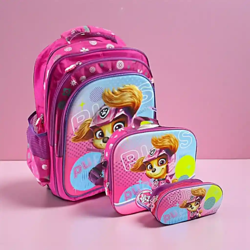 Prepárate para la aventura con este increíble set escolar de 3 piezas,que es el conjunto perfecto para la vuelta al cole, viajes o uso diario. Diseños Vibrantes y Divertidos : Presenta gráficos llamativos en 3D de los personajes más reconocidos y preferidos por nuestras niñas. Materiales Duraderos: Fabricado con materiales de alta calidad para resistir el uso diario y asegurar una larga vida útil. Amplio Espacio de Almacenamiento: La mochila principal ofrece tres compartimentos espacioso para libros y útiles, con bolsillos laterales de malla ideales para botellas de agua. Practicidad y Comodidad: Lonchera: Aislada para mantener los alimentos frescos. Cartuchera: Perfecta para organizar lápices, bolígrafos y otros accesorios escolares. Correas Ajustables: Las correas acolchadas de la mochila garantizan un ajuste cómodo y seguro para los hombros de los niñas.