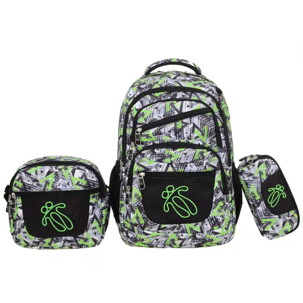 Combo Escolar Totto (maleta+cartuchera+lonchera) Diseño Dinámico Verde