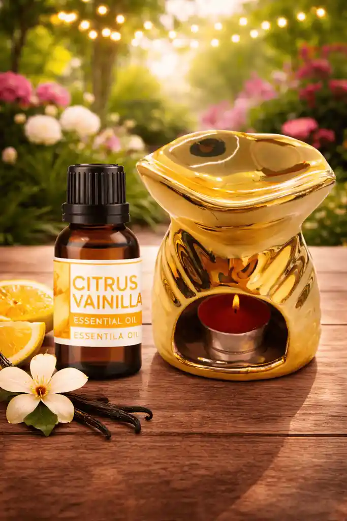 Dale un toque elegante y aromático a tus espacios con nuestro combo de esencia Citrus Vainilla + pebetero dorado. Una combinación perfecta entre diseño y fragancia que transformará cualquier ambiente en un lugar cálido, relajante y sofisticado. La esencia Citrus Vainilla mezcla notas cítricas frescas con la suavidad dulce de la vainilla, creando un aroma equilibrado y envolvente. El pebetero en acabado dorado aporta un estilo moderno y decorativo, ideal para complementar cualquier rincón de tu hogar u oficina. ✨ Incluye: 1 Esencia aromática Citrus Vainilla 1 Pebetero en cerámica color dorado 💫 Beneficios: Aroma duradero y agradable Ideal para aromaterapia y ambientación Diseño decorativo elegante Perfecto para regalar 🔥 Modo de uso: Agrega unas gotas de esencia en la parte superior del pebetero con un poco de agua, enciende una vela tipo tealight en la base y disfruta del aroma. Un detalle perfecto que combina fragancia y estilo en un solo producto 💛