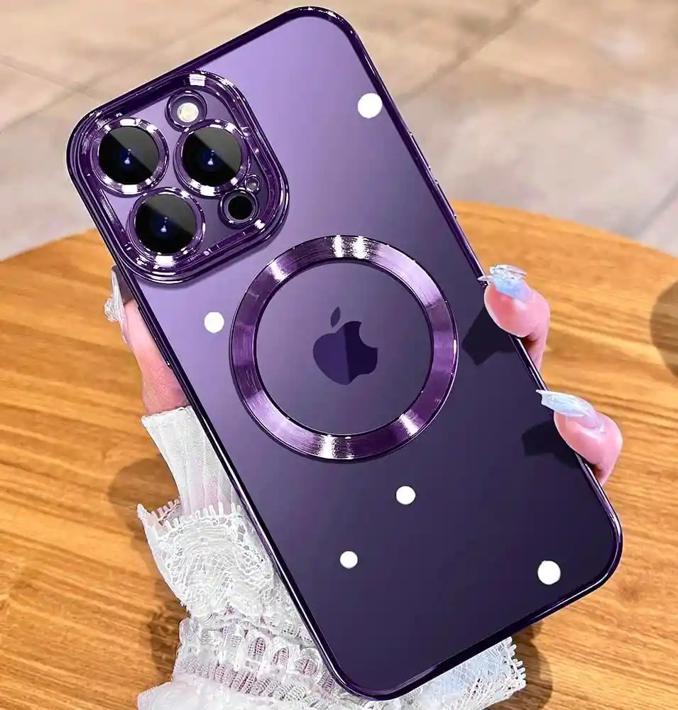 ESTUCHE MAGSAFE DE ALTA CALIDAD PARA PROTEJER TU TELEFONO, INCLUYE PROTECTOR DE CAMARAS VIDRIO BLINDADO DE LA MAS ALTA CALIDAD DEL MERCADO, CUBRE RAYONES Y GOLPES (TRASPARENTE) COLOR:TRASPALRENTE CON BORDE MORADO REFERENCIA: IPHONE 12 PRO MAX