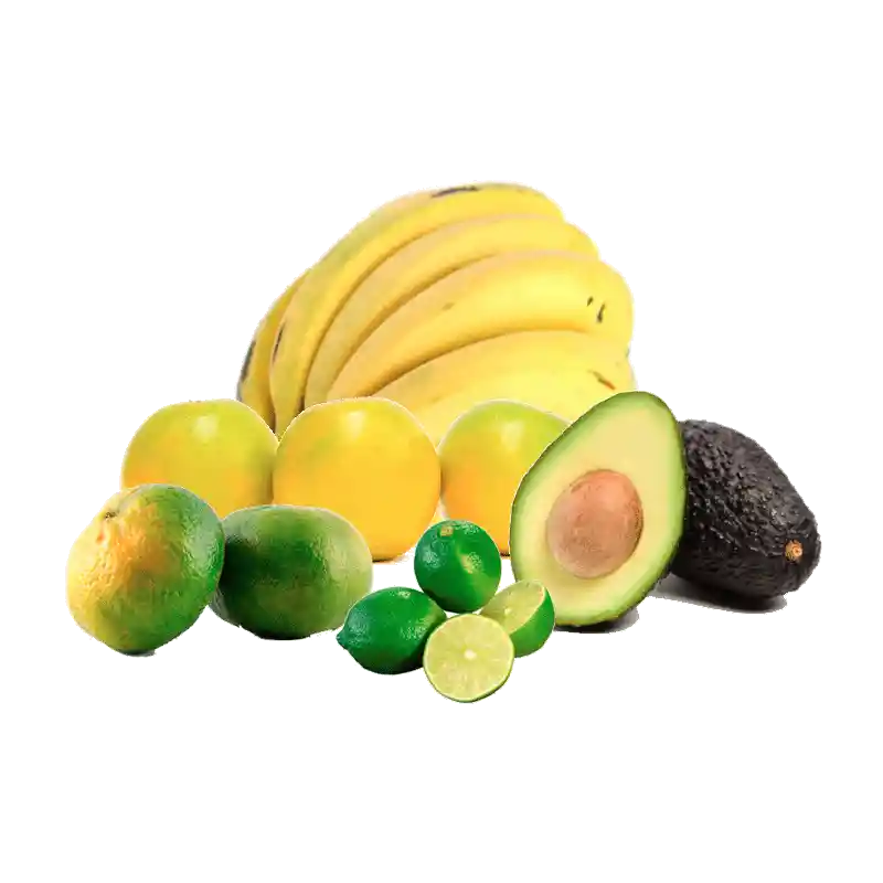 Disfruta de tu Combo Frutas Grandes, contiene: Limón Tahíti Grande (1000 gr), Naranja Valencia (1500 gr), Aguacate Hass (1100 gr), Banano Criollo Pinton (1000 gr), Mandarina (500 gr).