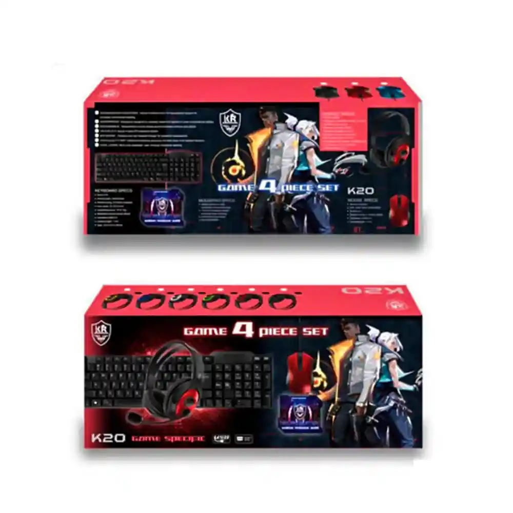 CARACTERÍSTICAS: ***TECLADO*** -Largo del cable: 1.5m -Interfaz USB 2.0-Teclado alfanumérico (104 teclas). -Tamaño: 431x131x30mm. -Banda negro.• ***DIADEMA*** -Longitud del cable: 1.8m. -Tamaño del micrófono: 9x7mm. -Tamaño del parlante: 40mm. -Sensibilidad del parlante: 92 dB. -Conectores: 2×3.5mm. -Sonido estéreo. -Frecuencia de respuesta: 20 HZ-20 KHz. -Luz LED de arcoíris. -Almohadillas cómodas. -Portable y con micrófono adaptable. -Compatibilidad múltiple: Xbox one, tablets, PC Y PS4• MOUSE: -Longitud del cable: 1.5m -6 botones. -Sensor óptico. -DPI: 800-1600-2400-3600. ***PADMOUSE*** -Tamaño: 24×28. -Anti-fluidos.