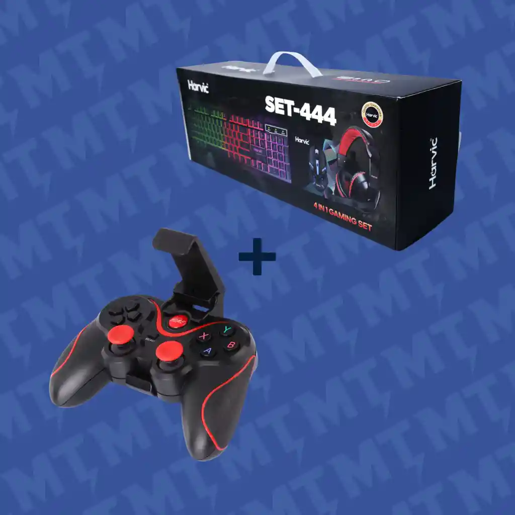 Lleva tu experiencia de juego al siguiente nivel con este combo gamer completo. Incluye el GamePad X3, ideal para juegos en celular o PC, con agarre cómodo y control preciso, junto al Set Gamer Harvic 4 en 1 que incorpora teclado, mouse, audífonos y pad para una configuración lista para jugar desde el primer momento. Potencia, estilo y rendimiento en un solo combo. Incluye: -GamePad X3 (Calidad Estándar). -Set Gamer Harvic con teclado, mouse, audífonos y mouse-pad (Calidad Original).