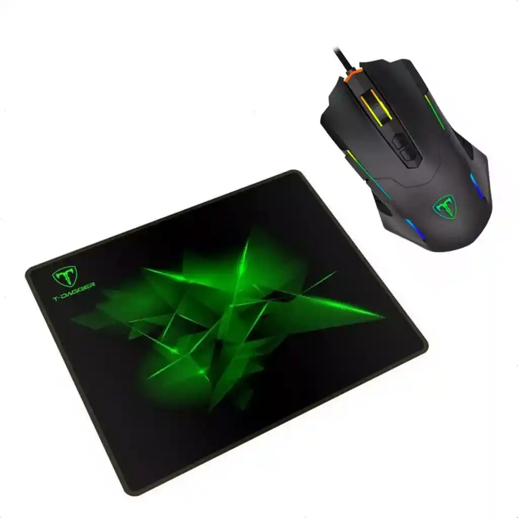 T-DAGGER MOUSE GAMER RGB BEIFADIER T-TGM206 / 7 BOTONES / 7200 DPI BEIFADIER T-TGM206 El Beifadier es un ratón gamer diseñado para quienes ya no quieren conceder ventajas y están listos para dejar atrás el mayor de los lastres: el miedo al triunfo. Con sus siete botones, su excelente sensor, sus amplísimas posibilidades de personalización, el Beifadier es un paso firme hacia adelante. Uno que se hace respetar. FIRMEZA PARA GUIAR LAS TROPAS El Beifadier está muy sólidamente equipado. Sus interruptores de alta calidad soportan más de 5 millones de clics, y su cable mallado resiste la torsión al tiempo que evita los enredos. Además, su sensor óptico Pixart PAW3212 lee los movimientos —lentos o rápidos, atinados o incomprensibles— con total precisión, incluso en niveles de aceleración muy altos. EL FARO EN LA OSCURIDAD Como buen T-Dagger que es, El Beifadier posee un potente sistema de retroiluminación RGB con efectos coloridos y dinámicos, niveles de brillo ajustables y amplias opciones de personalización. Para sintetizarlo con una frase ligeramente provocadora: te dará todo el brillo que a tu talento le falta. DEMOLEDORAMENTE ÁGIL 3 botones permiten jugar. 6, competir. Así que ¡deme 7! Los 2 botones extra de la parte superior están dedicados al cambio de DPI. Los 2 del lateral, por su parte, sacan al pulgar de su letargo y le dan la posibilidad de ser útil. Por fin. Y todos, además, pueden personalizarse a través del contralor dedicado, lo que incluye la grabación de macros. ESPECIFICACIONES TÉCNICAS BOTONES PROGRAMABLES: 7 TIPO DE AGARRE: Palm, claw ORIENTACIÓN: Derecho CABLE: Mallado de 1.80 mts. CONEXIÓN: Cableado USB SENSOR: PAW3212 SWITCHES: Huano Blue Dot – 10 millones de clics RETROILUMINACIÓN: RGB DPI MÍNIMO: 500 DPI MÁXIMO: 7.200 FRECUENCIA DE RESPUESTA: 1000 Hz. PESO: 143g DIMENSIONES: 123 x 72 x 33 mm. EXTRAS: No SOFTWARE: Si CONTENIDO DE LA CAJA Mouse Manual de uso. + PADMOUSE GAMER T-DAGGER GEOMETRY S 29 X 24 X 0.3 CM T-TMPO101 SERIE GEOMETRY Las Geometry son alfombrillas para gaming. Brindan un movimiento fluido y suave, equilibrando agilidad y precisión. Están fabricadas, además, con materiales sintéticos de primer nivel que les aseguran una larga vida útil. Y, por cierto, son muy bonitas, pero no es necesario que lo digamos; las imágenes hablan por sí mismas. COMODIDAD SUPERIOR La superficie de las Geometry está construida en tela con fibras de seda entrelazadas, lo que permite un deslizamiento equilibrado, tan ágil como preciso, de tipo speed. Es perfecta para juegos que realmente exigen al ratón, como los FPS o los MOBA, y optimiza la lectura de sensores de todo tipo para obtener siempre el mejor rendimiento. SOPORTA LAS EXIGENCIAS DE LA BATALLA Las Geometry están hechas para durar. La superficie está integrada a una base de caucho antideslizante de alta calidad, y los bordes están asegurados por costuras de doble puntada, lo que previene eficazmente que los materiales se separen y los tejidos se deshilvanen, incluso en condiciones de uso intenso como las del gaming. Son muy confiables. ESPECIFICACIONES TÉCNICAS TAMAÑO GEOMETRY S: 290 x 240 mm. GROSOR: 3 mm. CONSTRUCCIÓN: Tela entrelazada con fibras de seda que garantiza máximo deslizamiento, fondo de caucho, antideslizante y adaptable a cualquier superficie. GENERALIDADES: Resistente al agua y fácil de limpiar. Los bordes son cosidos con doble puntada, para evitar deshilvanado. TIPO DE DESLIZAMIENTO: Speed, optimizado para todos los sensores.