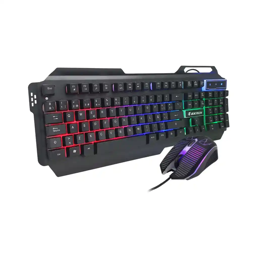 Teclado semimecánico Gamer con mouse, variedades de efectos de iluminación. Reacción de teclas rápidas interruptor Jertech: 40 g de presión de disparo Teclado mecánico con mouse Interruptor Jertech: 40 g de presión de disparo Cable de cobre Una variedad de geniales efectos de iluminación Diseño tectónico de combate Reacción de teclas rápidas Diseño completo y sin conflictos Conexión USB Tamaño: 47.3cm (Ancho) x 19.3cm (Largo) x 3.1cm (Grueso)