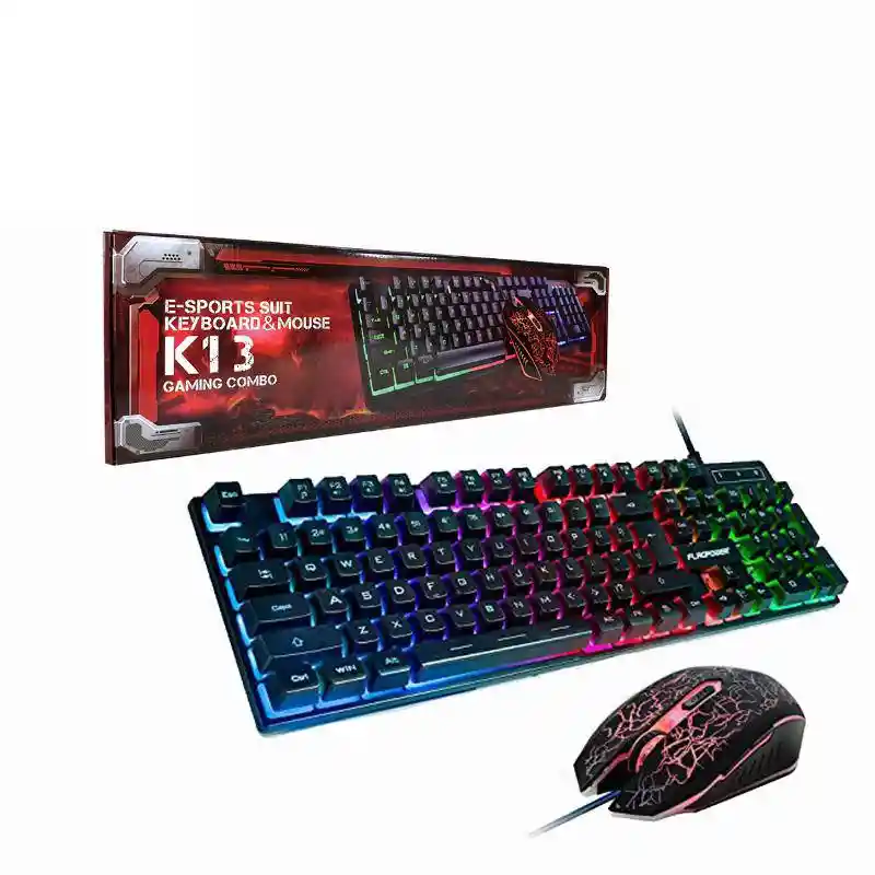 TECLADO • Interfaz: alámbrico USB • Luces LED Multicolor RGB • Color de luz de fondo: Rainbow • Modo estático: Rainbow • On/Off • Idioma: Inglés (no incluye tecla Ñ) • Color: Negro • Tecnología Keycap: ABS + PC Material Button / Keycap Ray Carving • Llaves normales: 104 • Ergonomía: Soporte • Longitud del cable USB: 150 cm • Peso 980g. • 25 millones de veces la vida útil • Teclado de juego retroiluminado de alta sensación mecánica • Dimensión 44.0 x 13.5 x 0.35 mm MOUSE • Retroiluminado: luz de fondo de respiración • Motor óptico de gama alta, posicionamiento preciso. • La resolución más alta: 2400DPI • Personalice el interruptor DPI: 800/1600 / 2400DPI. • Verdadero 2400DPI A3305 Pro-Gmaing Sensor • Tamaño: 130 x 65 x 40 mm. • Cambio de vida: 8 millones de ciclos • Botones: 4 botones con rueda de desplazamiento (Un interruptor de DPI) • Más adecuado para usuarios de computadoras portátiles y usuarios de PC. • Conectividad inteligente. no hay necesidad de codificar, plug play • Diseño ergonómico, sensación cómoda de las manos, reduce la fatiga. • La longitud del cable USB es de hasta 1,6 m. • Peso: alrededor de 129g COMPATIBILIDAD • Soporta OS Windows 98/2000 / ME / XP 32bit Vista / Win7 / Win8 32 / 64bit / Mac ... O los últimos